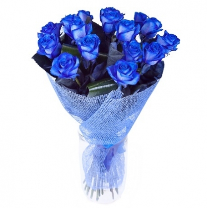 Букет из 15 синих роз в упаковке