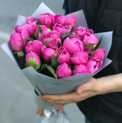 Букет из 19 малиновых пионов – это настоящий шедевр флористического мастерства. Красивые, пышные цветы сочного розового цвета создают впечатление нежности и изящества. Эти пионы выглядят невероятно естественно и привлекательно. Они обладают неповторимым ароматом и очаровательной красотой, которая будет радовать глаза в течение длительного времени.