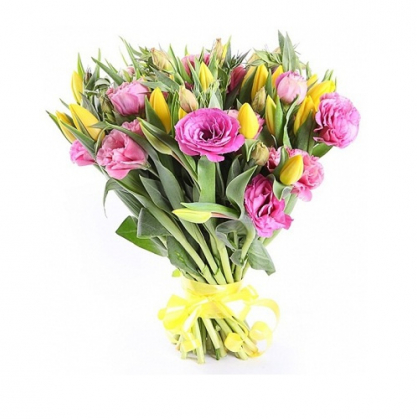 Букет с тюльпанами и эустомой | Заказать в Королеве