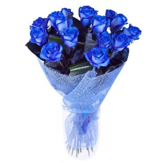 Букет из 15 синих роз с зеленью