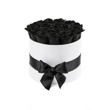 Шляпная коробочка черных роз станет очень необычным подарком!