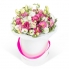 Стильная коробочка из эустом с добавлением листьев питтоспорума