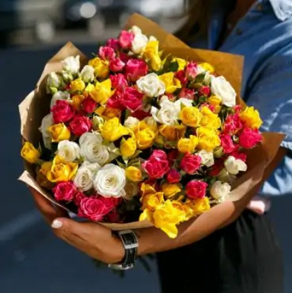 Букет разноцветные кустовые розы в Королеве