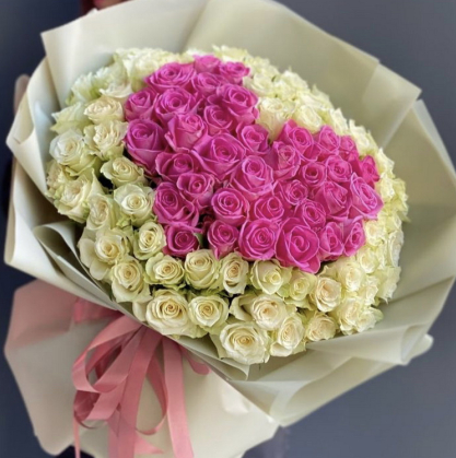 Сердце из 101 белой и розовой розы | Купить в Королеве