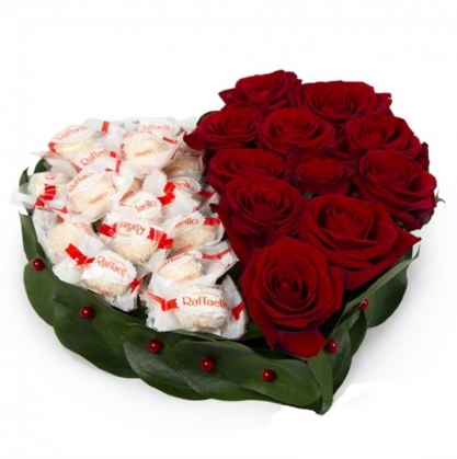 Сердце из роз и конфет Rafaello с доставкой в Королёве