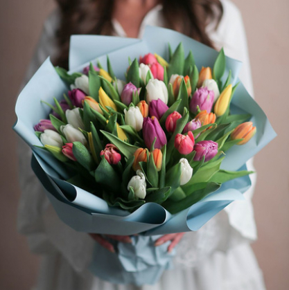 Закажите букет из разноцветных тюльпанов, который подарит радость и весеннее настроение близкому вам человеку.