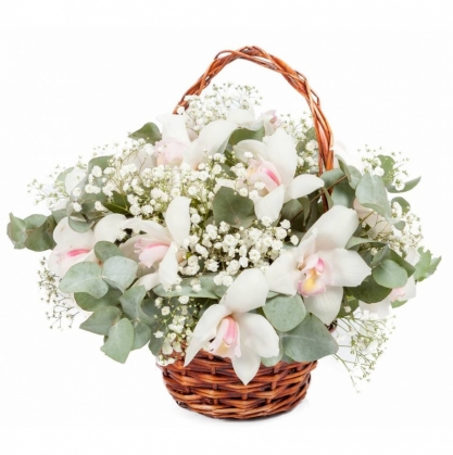 Корзина белых орхидей "Воздушный поцелуй" | Купить в Королеве